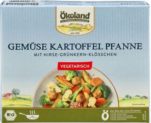Herzhafte Gemüsemischung mit Kartoffelwedges, abgeschmeckt mit Kräutern.