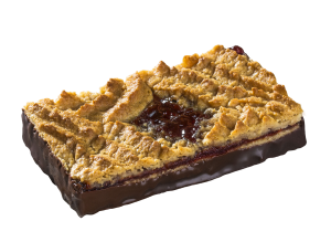 Dinkel-Mürbeteig, fruchtige Sauerkirschkonfitüre, edles Marzipan und Zartbitter-Schokoladenboden.